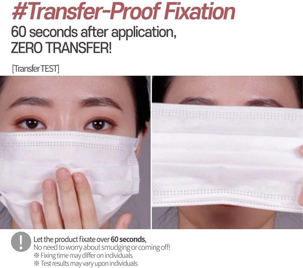 - TRANSFER-PROOF FIXATION – 60 seconds after application, zero transfer! Let the product fixate over 60 senconds, No need to worry about smudging or coming off. ( 6hours mask transfer provention certified/ Preventon for 6 hours, compared to the controlled sample relatively)