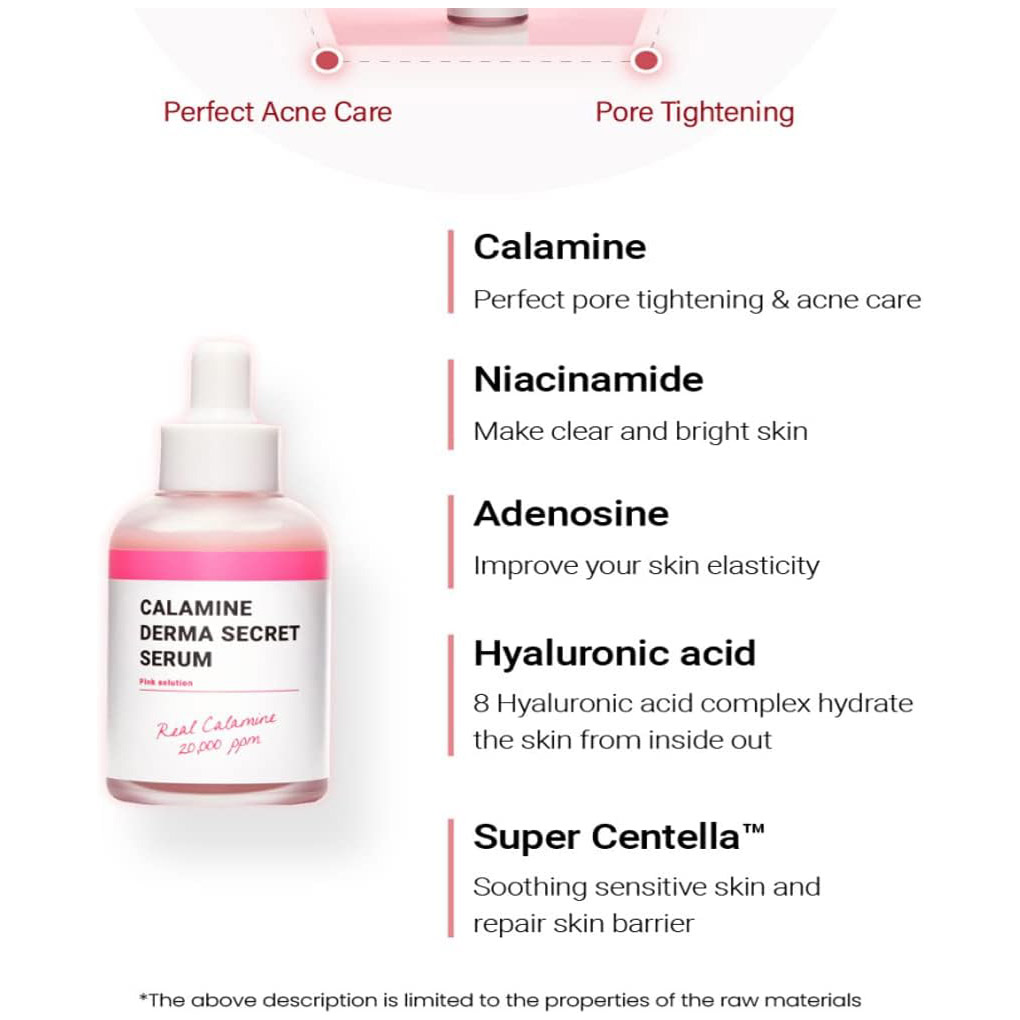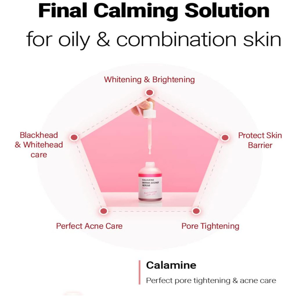 K-SECRET Calamine Derma Secret Serum Secret serum which includes real Calamine 20,000ppm is effective for calming sensitive skin. Calamine derma secret serum will brighten up your dull skin and protect the skin from strong UV, external irritation. This serum will improve your skin barrier healthier. #Brightening #Acnecare #porecare #masknecare Add perfection on your skincare.