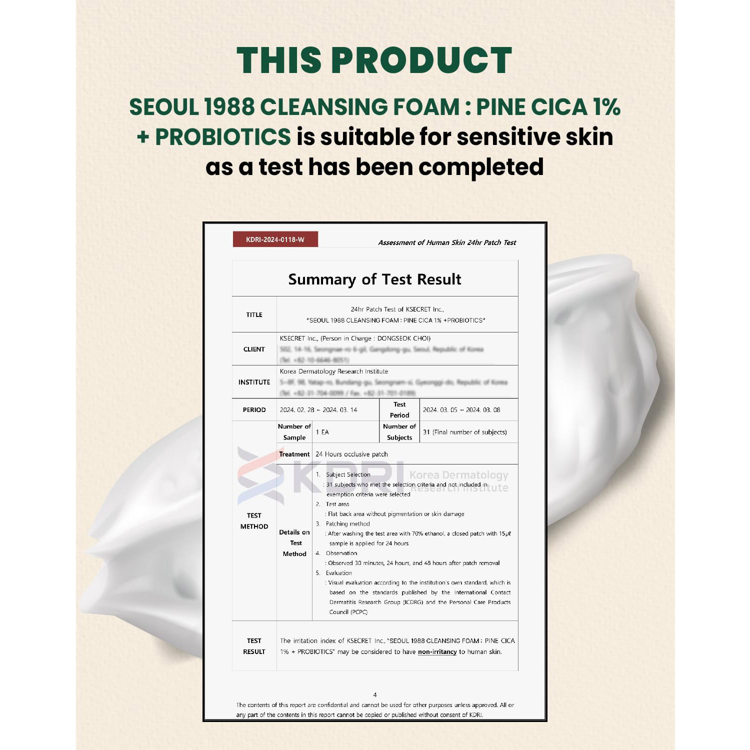 K-SECRET SEOUL 1988 Cleansing Foam : Pine Cica 1% + Probiotics 150ml