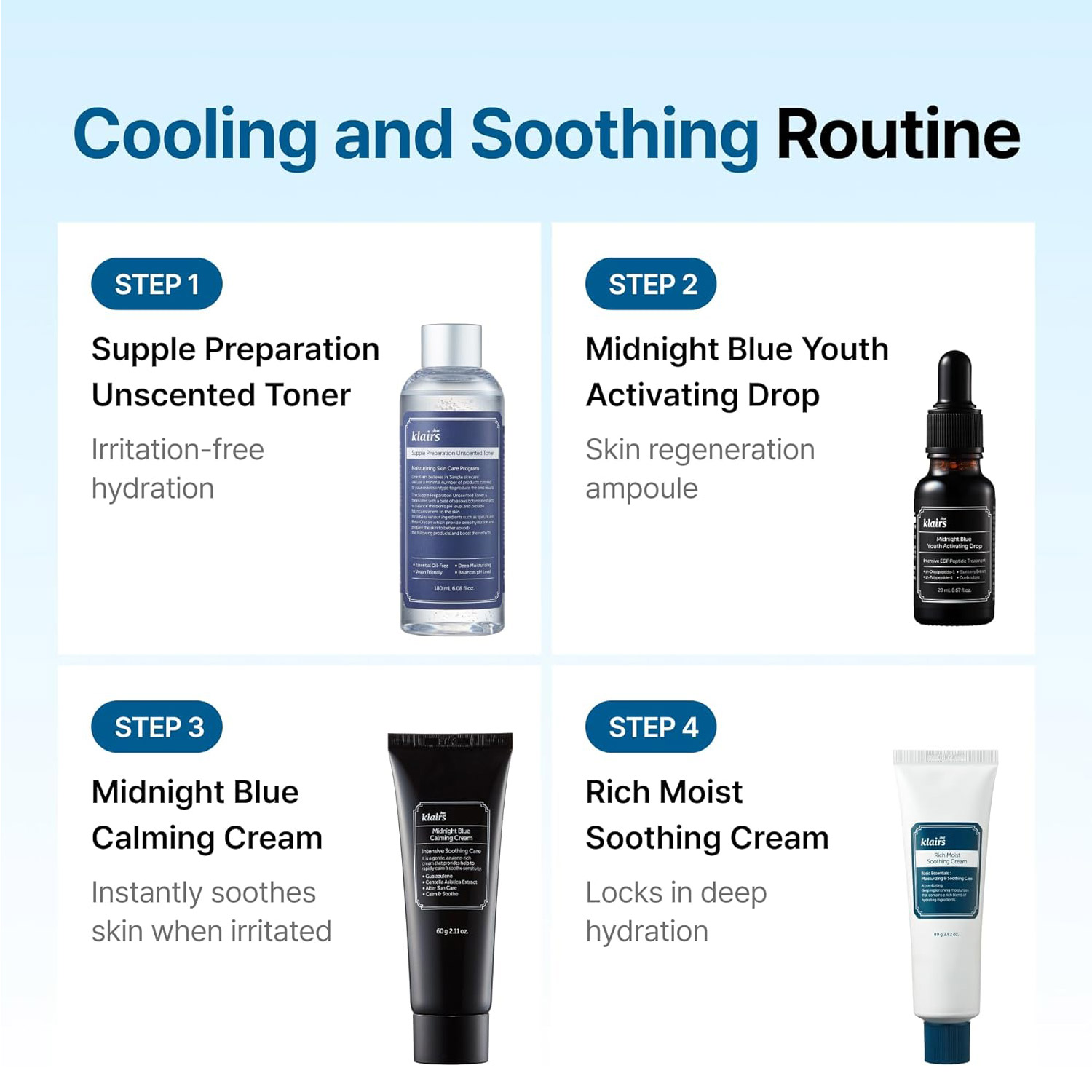 • The Klairs Midnight Blue Calming Cream is a gentle cream that instantly calms and soothes sensitive skin. Powered by nature, its star ingredients protect your skin from stress and irritation.