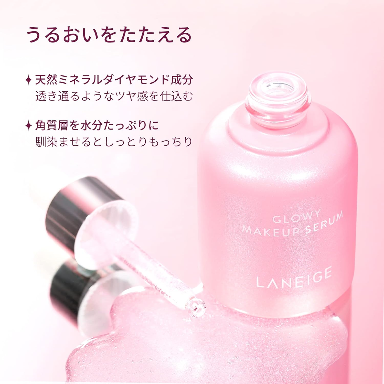 Laneige Glowy Makeup Serum is a lightweight serum that replenishes your skin with moisture and gives you a clear, healthy and luminous look. It also improves the skin’s texture and makes your makeup application like foundation or cushion long lasting and glowy. It creates a perfect base for makeup application with strong adherence. The natural mineral diamond serum also provides an instant glow from a deep and ceramide water based gel base which balances moisture oil levels for a moist, supple skin texture.