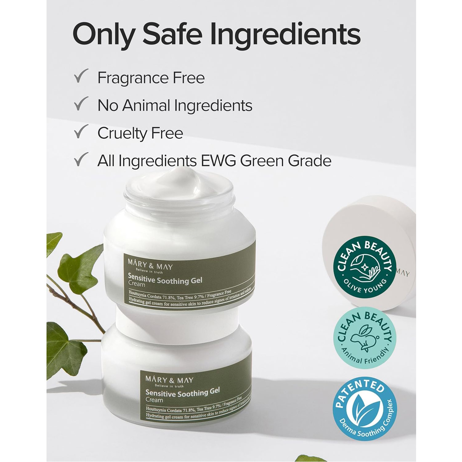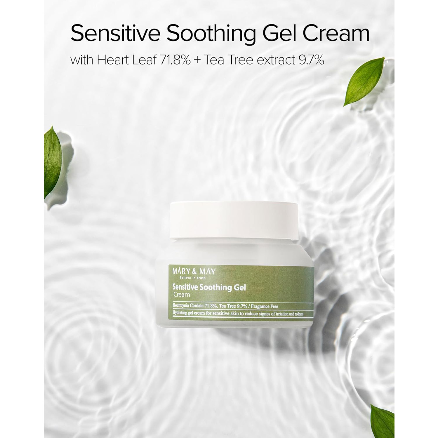 Mary&May Sensitive Soothing Gel Blemish Cream, 71.8% Houttuynia Cordata + 9.7% Tea tree extract, translucent gel type cream to soothe troubled and sensitive skin 2.46 fl oz