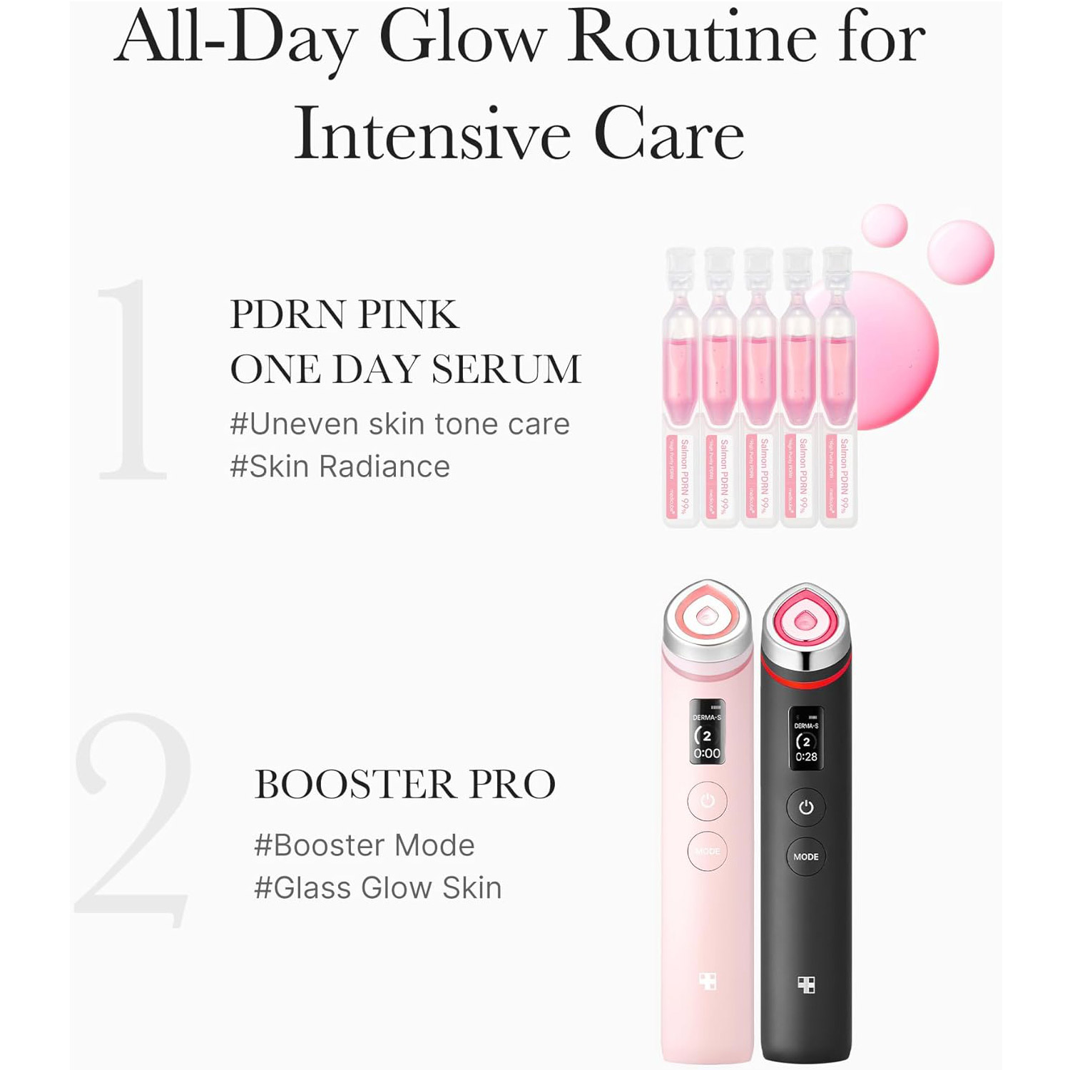 - One-Day Pink Drop Ampoule: Each dose is individually packaged in a convenient, single-use vial inspired by eye drops. This design ensures the stability of the intensive ampoule formula and delivers maximum efficacy with every application.