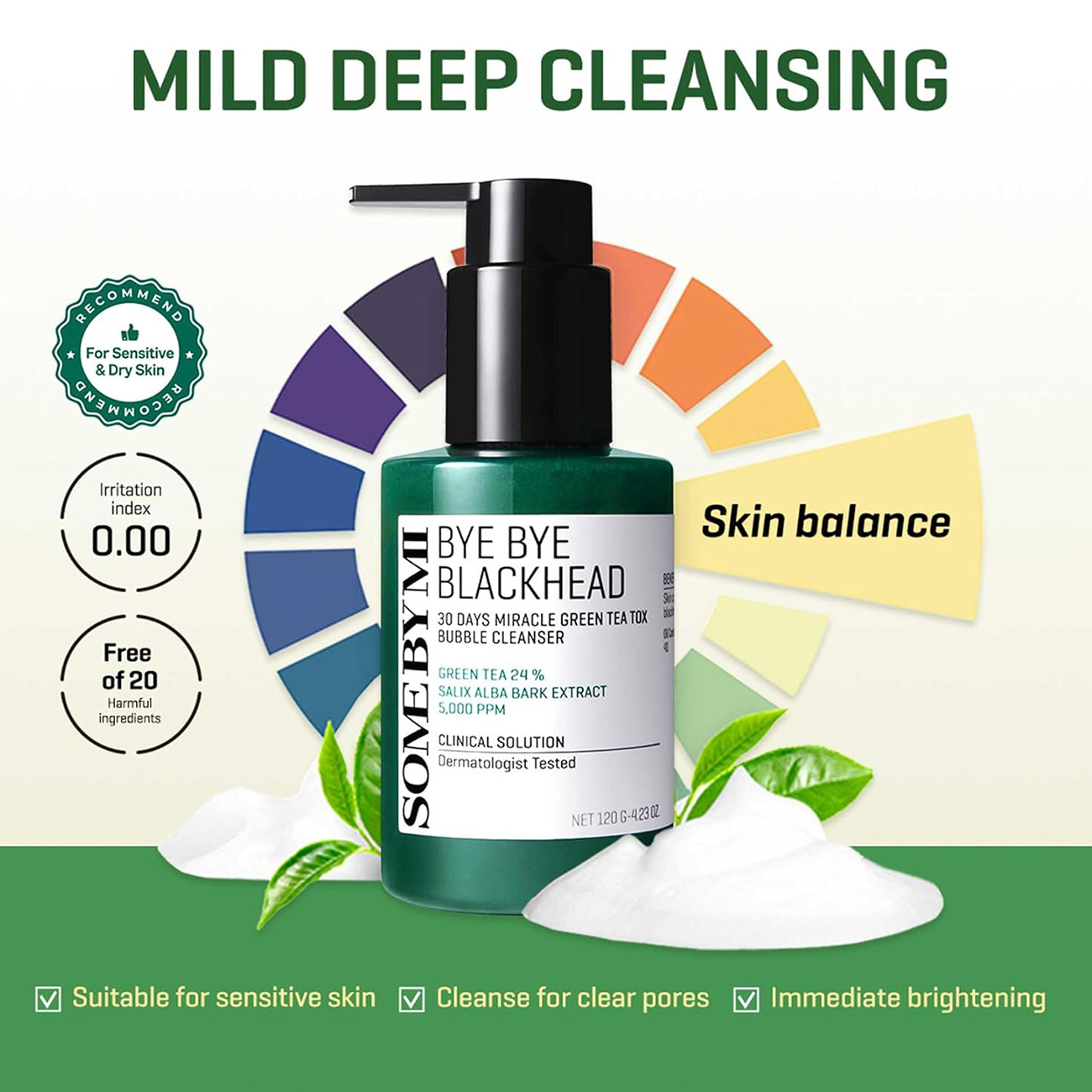 SOME BY MI Bye Bye Blackhead 30 Days Miracle Green Tea Tox Bubble Cleanser 120g