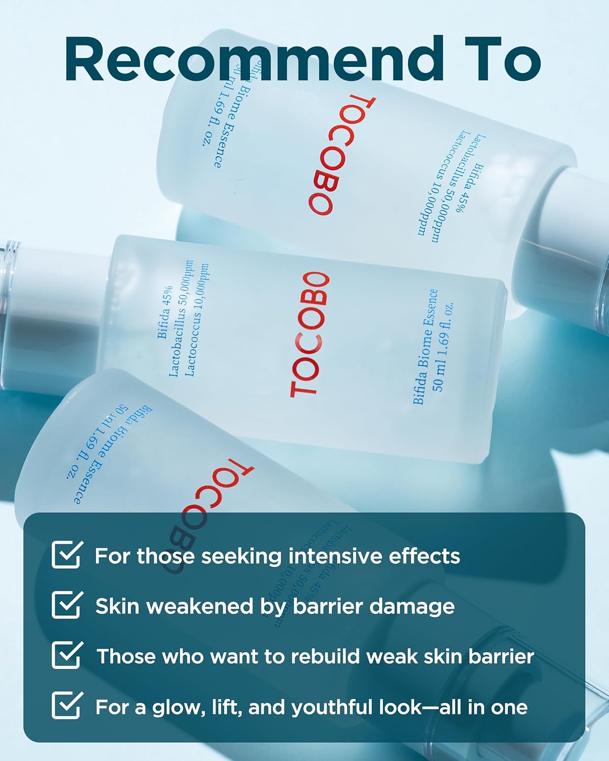 - [TOCOBO] Bifida Biome Essence 1.69Fl Oz, 50ml, All in one, Skin Repair Serum, Korean Skin Care, Skin Barrier Essence, Natural Ingredients, Vegan Essence, Cruelty Free, Korean Vegan Essence