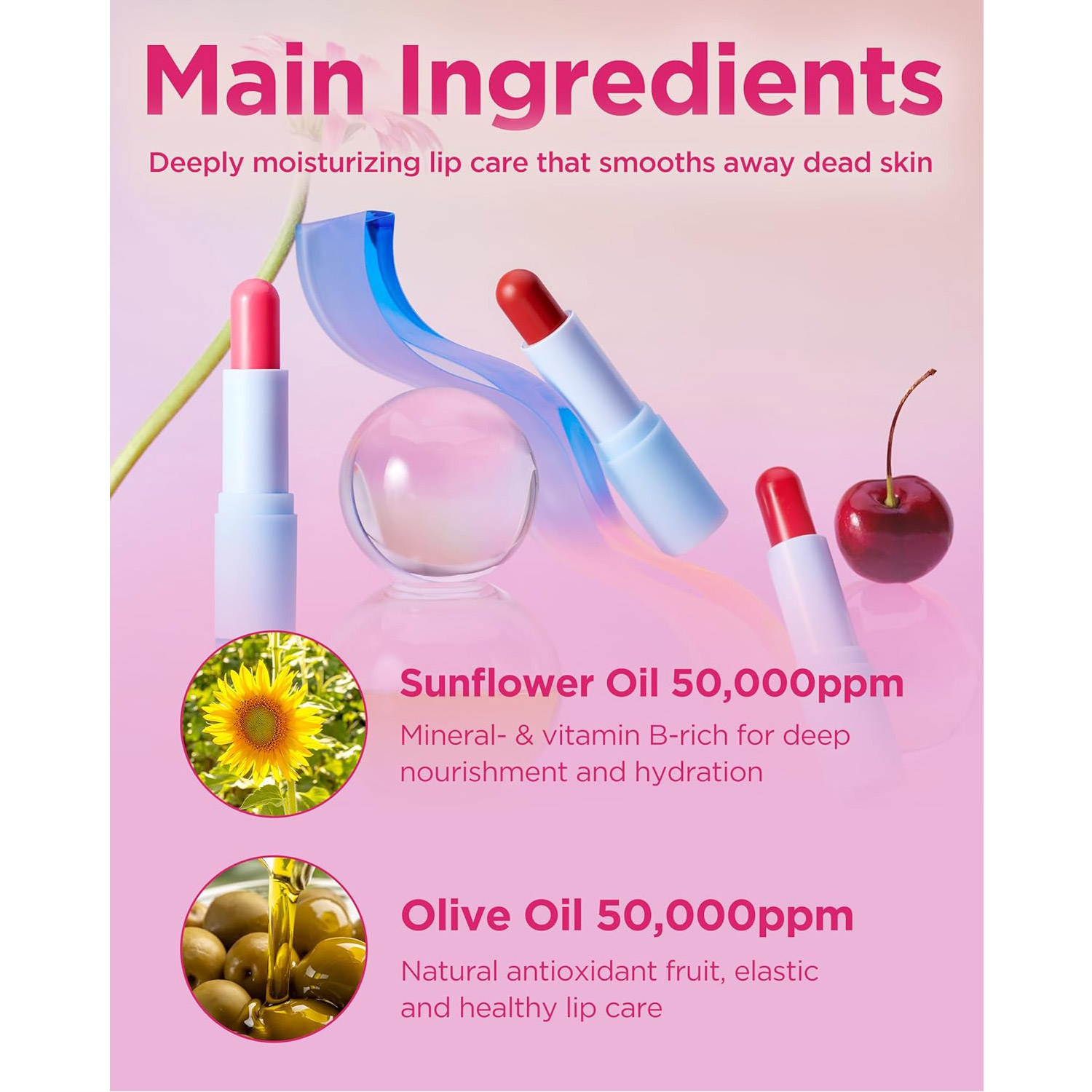 Brilliant color and moisturizing power forming a protective moisturizing oil film as if it were coated with shiny glass glitter. Vegan tinted colored lip balm that cares for dead skin cells on your lips.